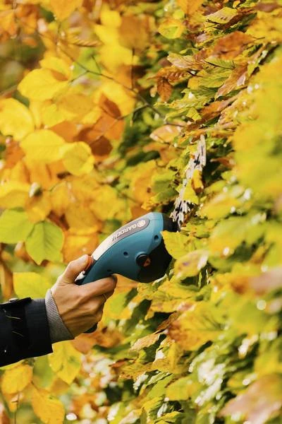 De Accu Gras en struikschaar ClassicCut Li van Gardena helpt je je gazonranden nauwkeurig te maaien en prachtig afgewerkte struiken en kleine heggen te verkrijgen. De set bevat een 8 cm breed grasmes en een 12 cm lang buxusmes. De precisiegeslepen messen met antikleeflaag blijven langdurig scherp en zorgen voor een exacte, nette snede. Het grasmes is een in Duitsland vervaardigd kwaliteitsproduct. Dankzij zijn smalle ontwerp en ergonomische handgreep, past de gras- en buxusschaar makkelijk in je hand en is hij gemakkelijk te hanteren. Het laag gewicht van 550 gram laat je maaien zonder moe te worden. Je kan de messen snel en gemakkelijk verwisselen met een druk op de knop, om de gras-schaar in een buxus-schaar te veranderen. De accu gaat ongeveer 50 minuten mee, wanneer volledig opgeladen. Het led-display toont je op elk moment de laadstatus van de accu. Je kan de inbegrepen USB-C-kabel gebruiken om te laden. Een handige, los verkrijgbare accessoire is de telescopische steel met wielen (art. nr. 9859-20). Hiermee kan je gazonranden maaien zonder dat je hoeft te bukken