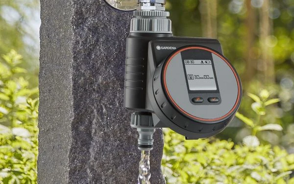 Met de Gardena besproeiingscomputer Flex kan de irrigatie op balkons, dakterrassen of patio’s flexibel en eenvoudig automatisch worden geregeld. Het apparaat werkt op batterijen, kan direct op de kraan worden aangesloten en kan eenvoudig worden bediend via een innovatieve roterende knop voor de selectie van een programma en het bevestigen ervan. Een gemakkelijk leesbaar display toont alle instellingen in één oogopslag. Het weerbestendige bedieningspaneel kan worden verwijderd. Met de besproeiingscomputer Flex kunnen de besproeiingstijden in cycli van seconden worden aangepast, waardoor ze ideaal zijn voor gebruik met een druppelsysteem. Met de Gardena besproeiingscomputer Flex is mogelijk om deze waterregeling te combineren met een Gardena bodemvochtigheidssensor.