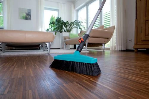 Gardena Combi-System-huishoudbezem. Met hoogwaardig polypropyleen gemengd paardenhaar. Borstelhuis van slagvast kunststof. Meubelsparende, afgeronde hoeken.