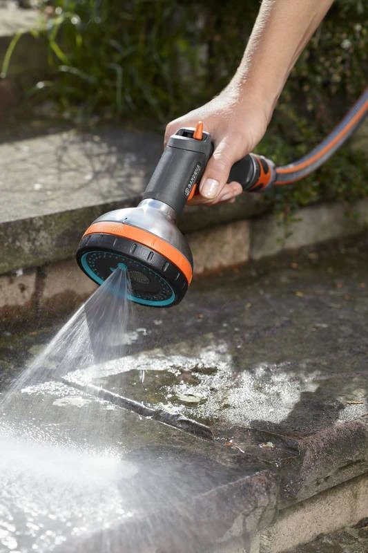 Gardena Premium multifunctionele broes. Deze Gardena broes is ideaal voor het besproeien van bloembedden en grote oppervlaktes. Nieuw bij Gardena: Deze pistoolbroes is vorstbestendig en heeft een zachte kunststof ring die de kop beschermd tegen beschadigingen. De broes heeft een handige inschakelknop en vastzetmogelijkheid voor langdurig sproeien. Voordelen: – Zachte broesstraal voor het besproeien van de tuin – Gemakkelijk om overal bij te komen – Vorstbestendig – Ring van zacht kunststof beschermd de kop tegen beschadiging – Vastzetmogelijkheid voor langdurig sproeien – Handgreep met zachte kunststof element.