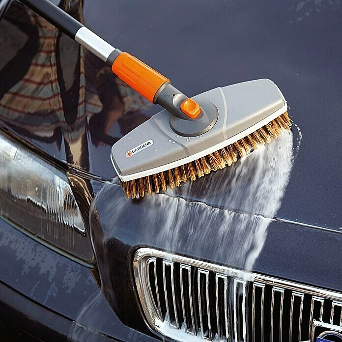 De GARDENA wasborstel met originele GARDENA systeemaansluiting is uitgerust met een hoogwaardige PET-borstel. Hij is ook geschikt voor het reinigen van gevoelige oppervlakken zoals auto’s. Omdat je de borstel in stappen van 30° kunt draaien, zijn allerhande oppervlakken moeiteloos te reinigen.